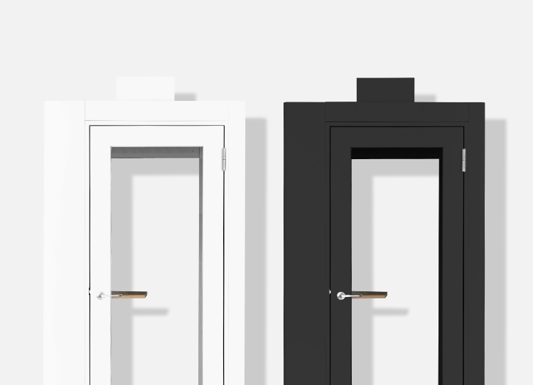ブラック塗装の収納庫に合う別色のデザインで製作しました。オフィスをより上質に魅せることが可能です。